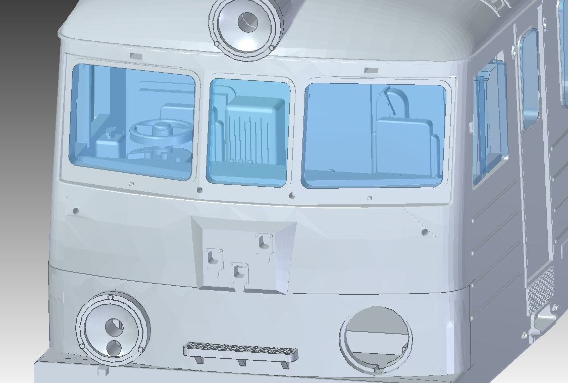 Kabina i oszklenie. Pełne odwzorowanie kabiny z podsufitką, nastawnikiem itd