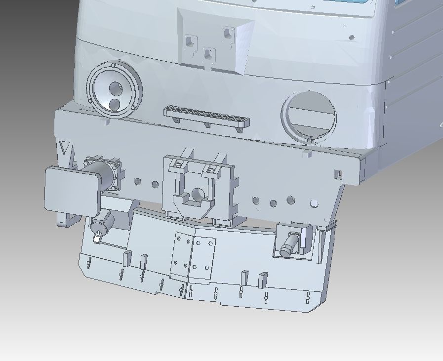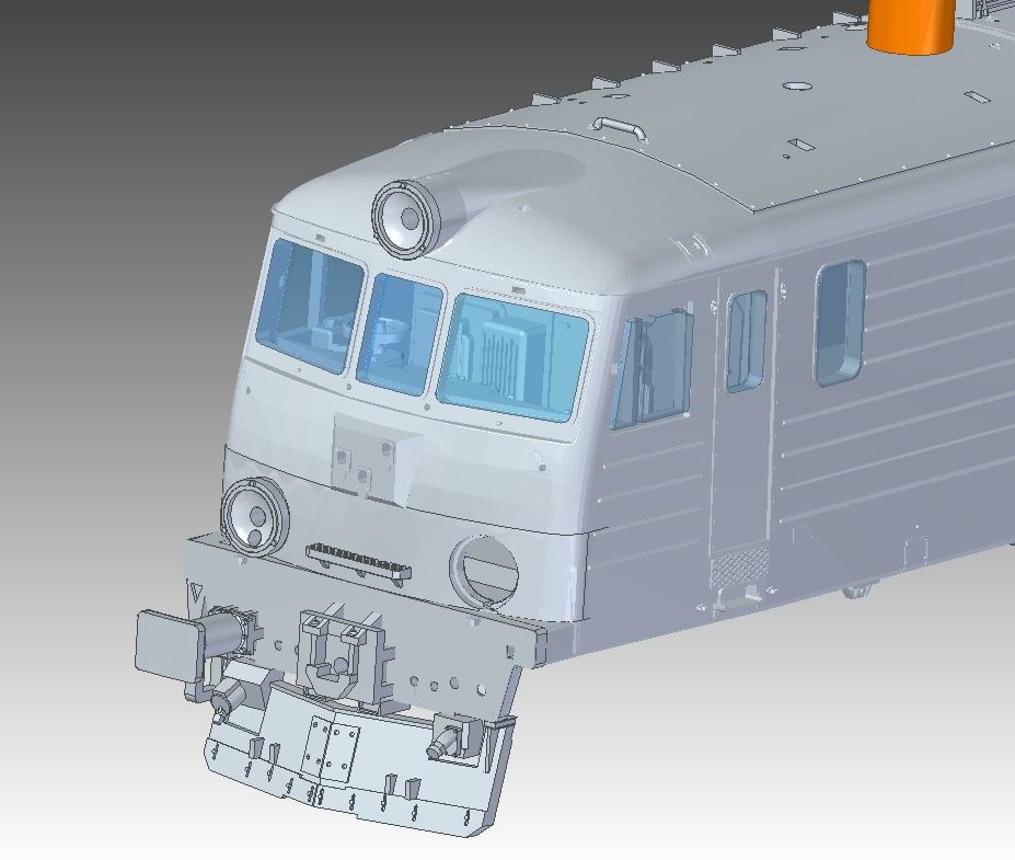 Przód, lemiesz. Front lokomotywy z pełnym lub lemieszem z otworem pod KKS. Zderzaki, schodki, krany, poręcze, reflektory itd jako oddzielne elementy z mosiądzu. Reflektory są monolitem z odbłyśnikiem oraz gniazdem na szkiełko.