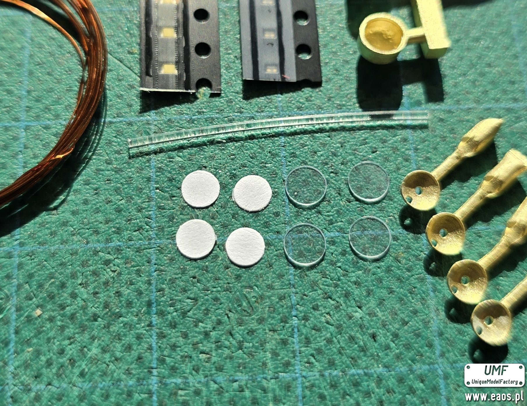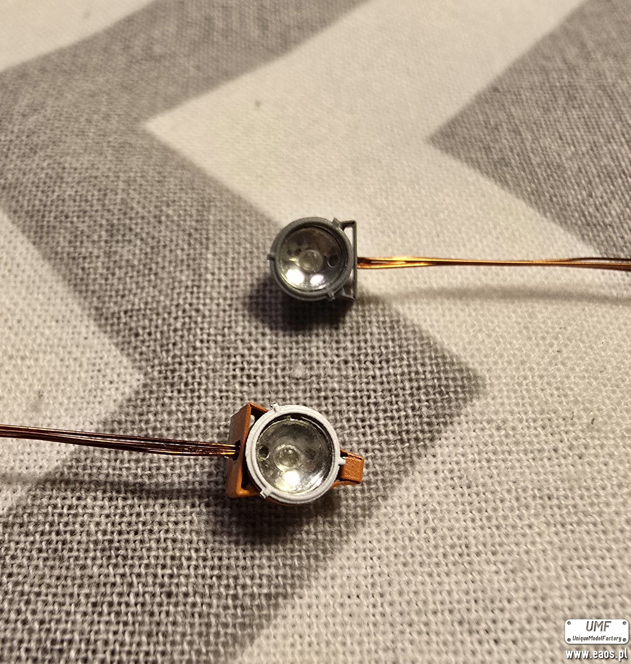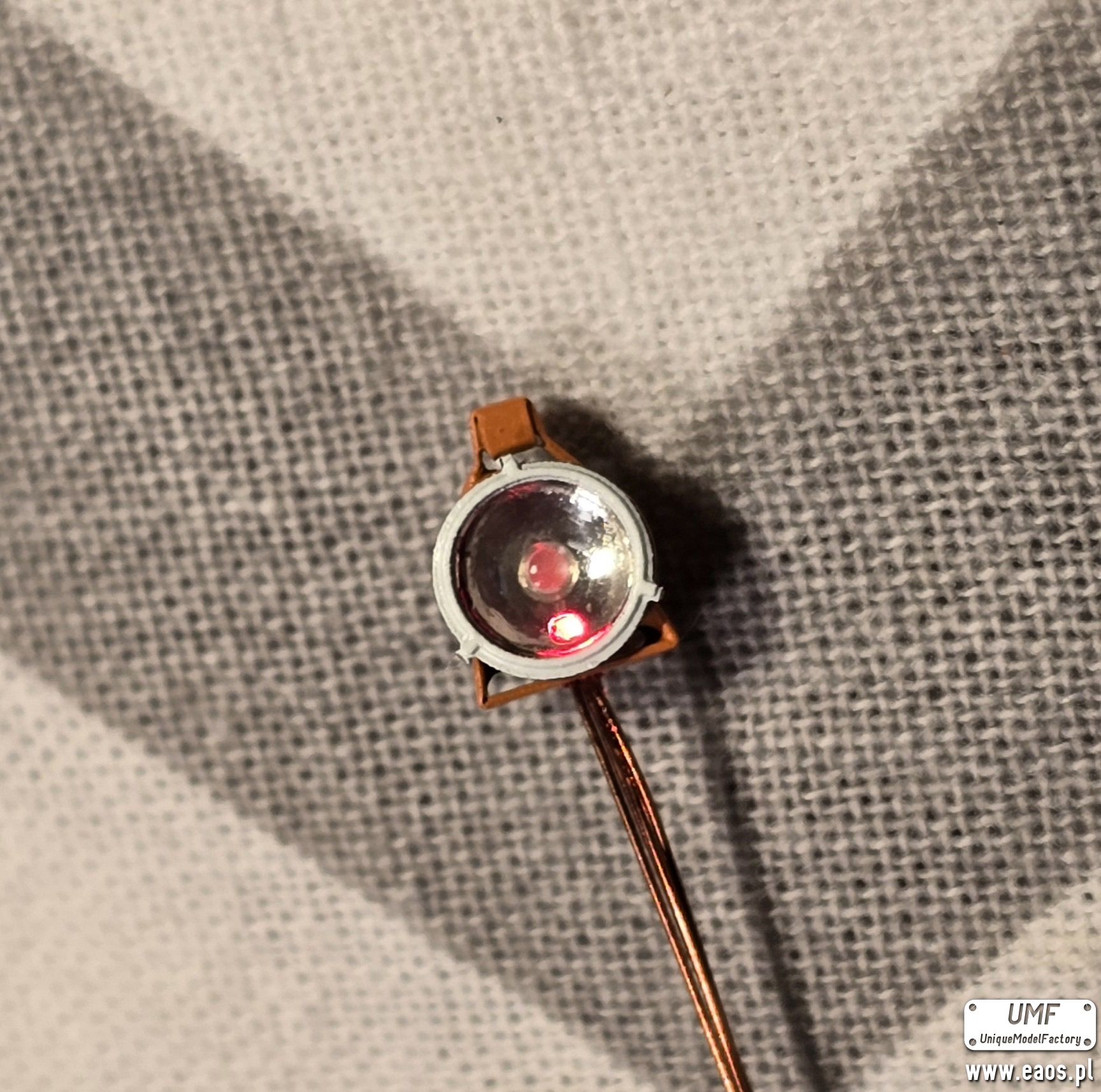 Reflektor posiada odlewaną z mosiądzu czaszę oraz odbłyśnik reflektora, wycinane wykrojnikiem szybki oraz izolatory. Światło pochodzi z diod SMD + światłowody.