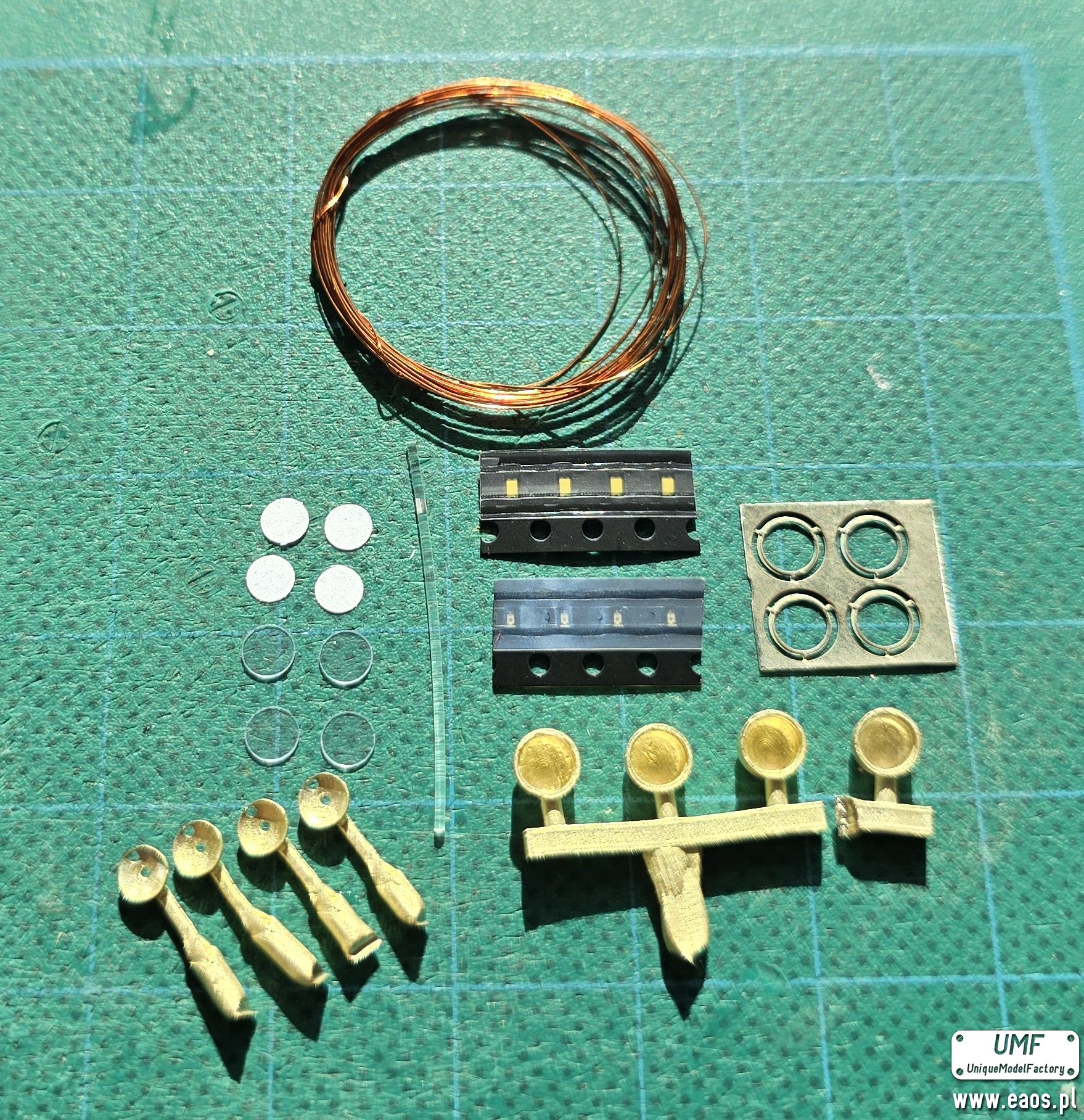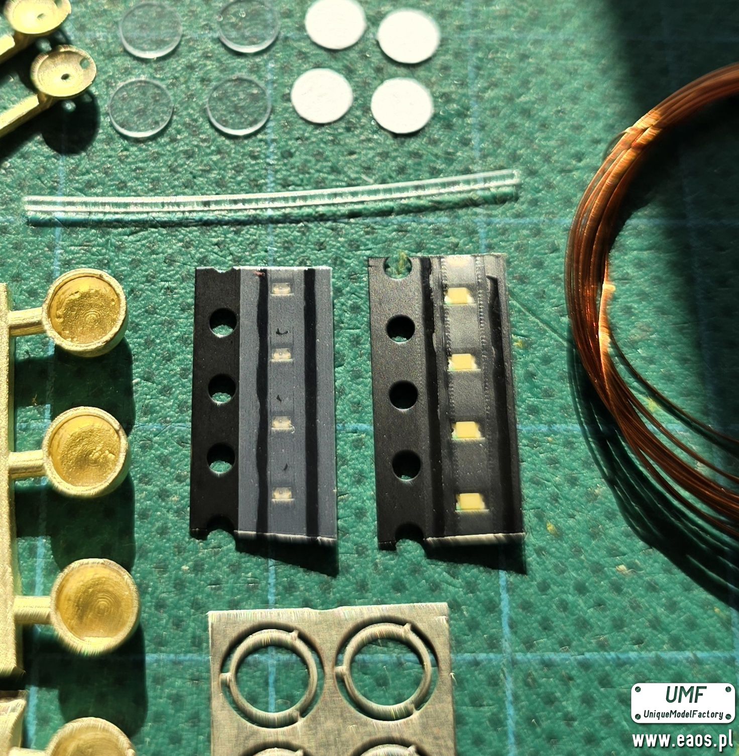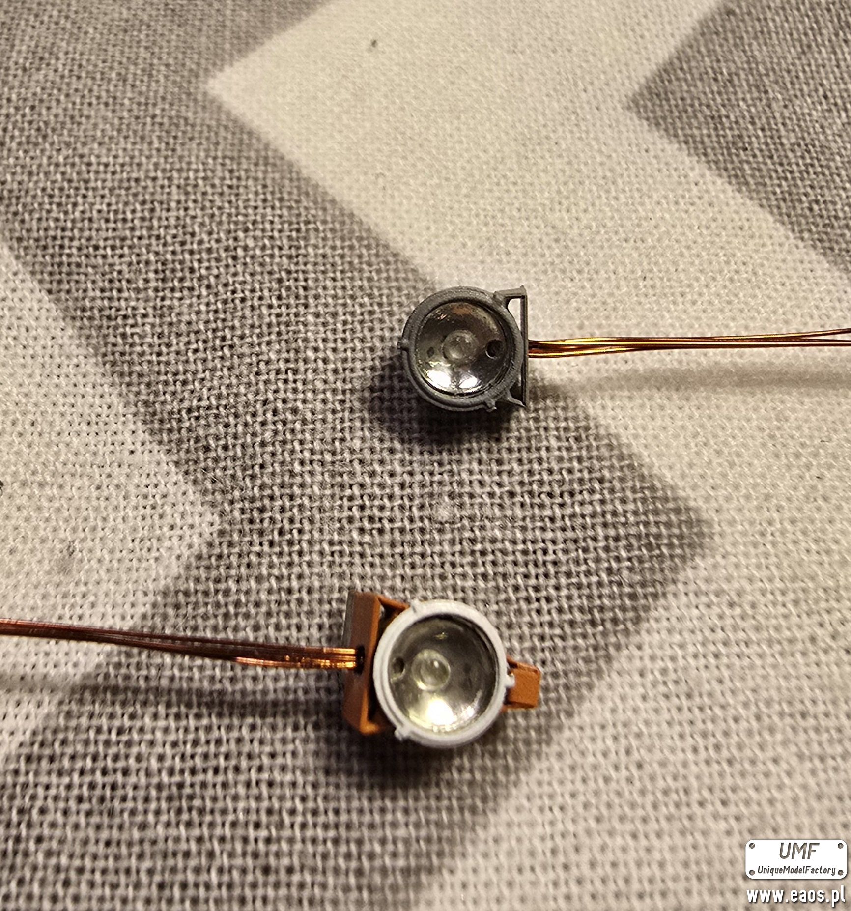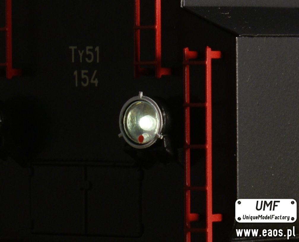 Reflektor posiada odlewaną z mosiądzu czaszę oraz odbłyśnik reflektora, wycinane wykrojnikiem szybki oraz izolatory. Światło pochodzi z diod SMD + światłowody.