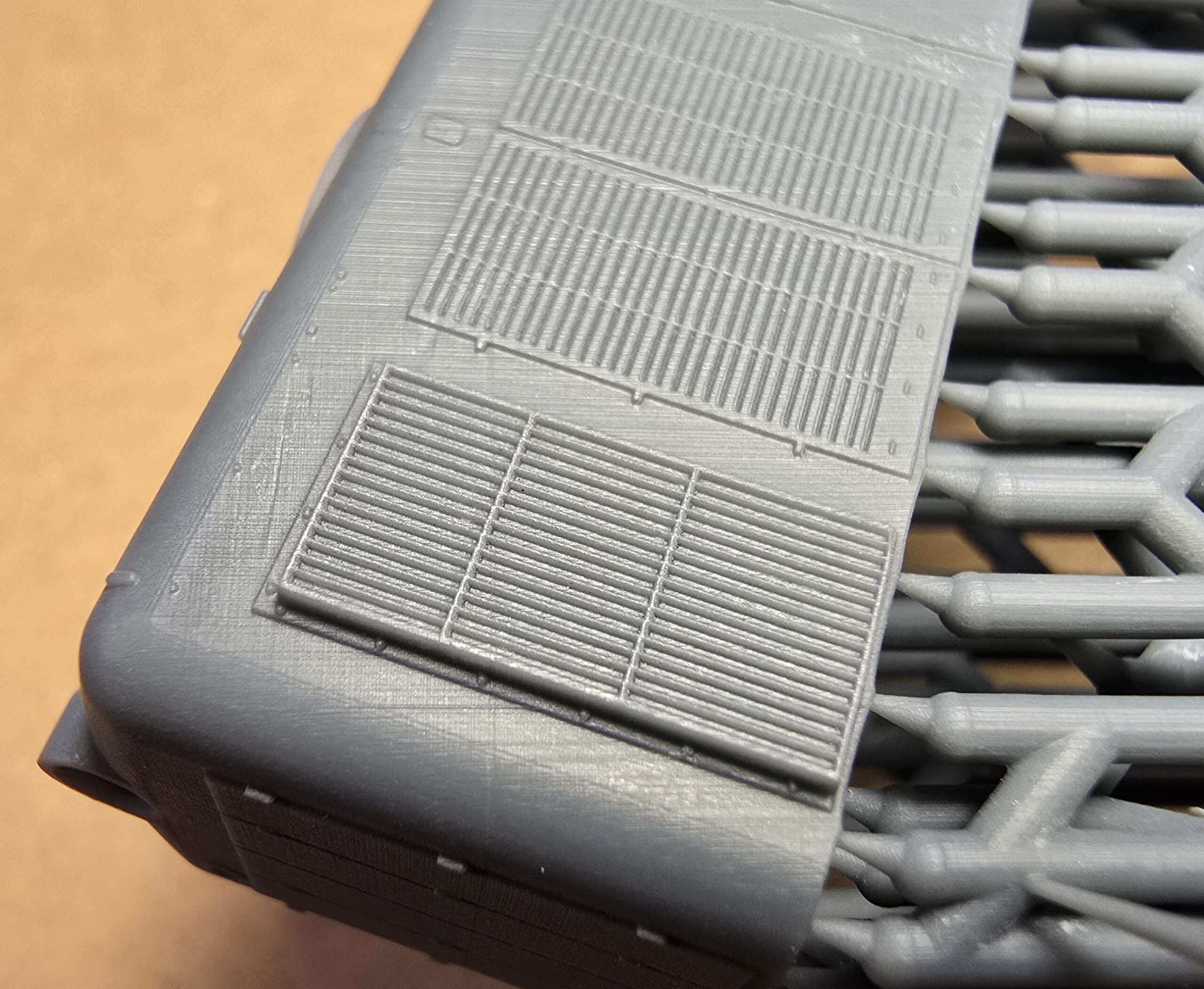 – blaszki fototrawione (ramki reflektorów, tabliczki, obudowa haka, barierki, siatka wentylatora, wycieraczki)