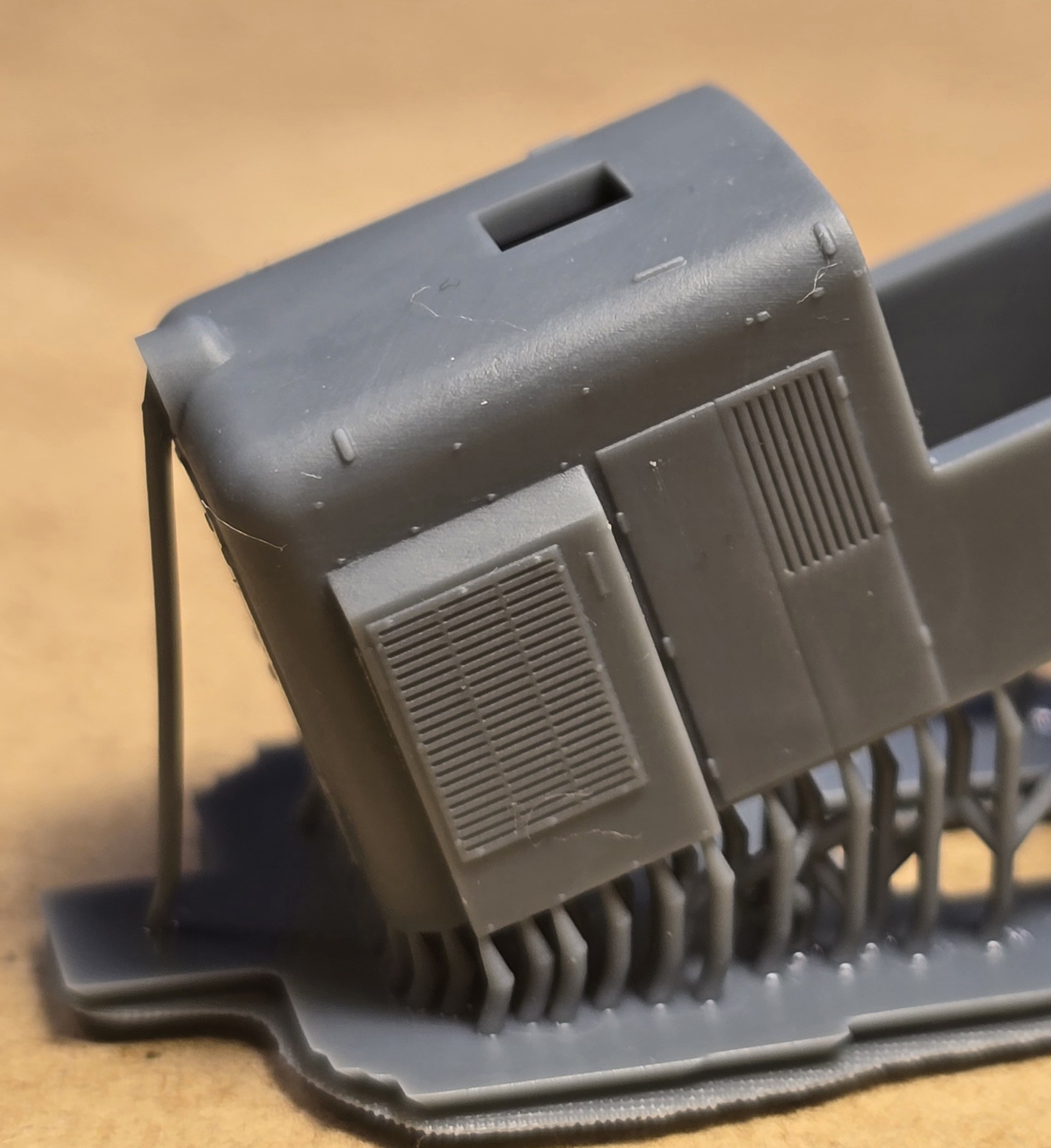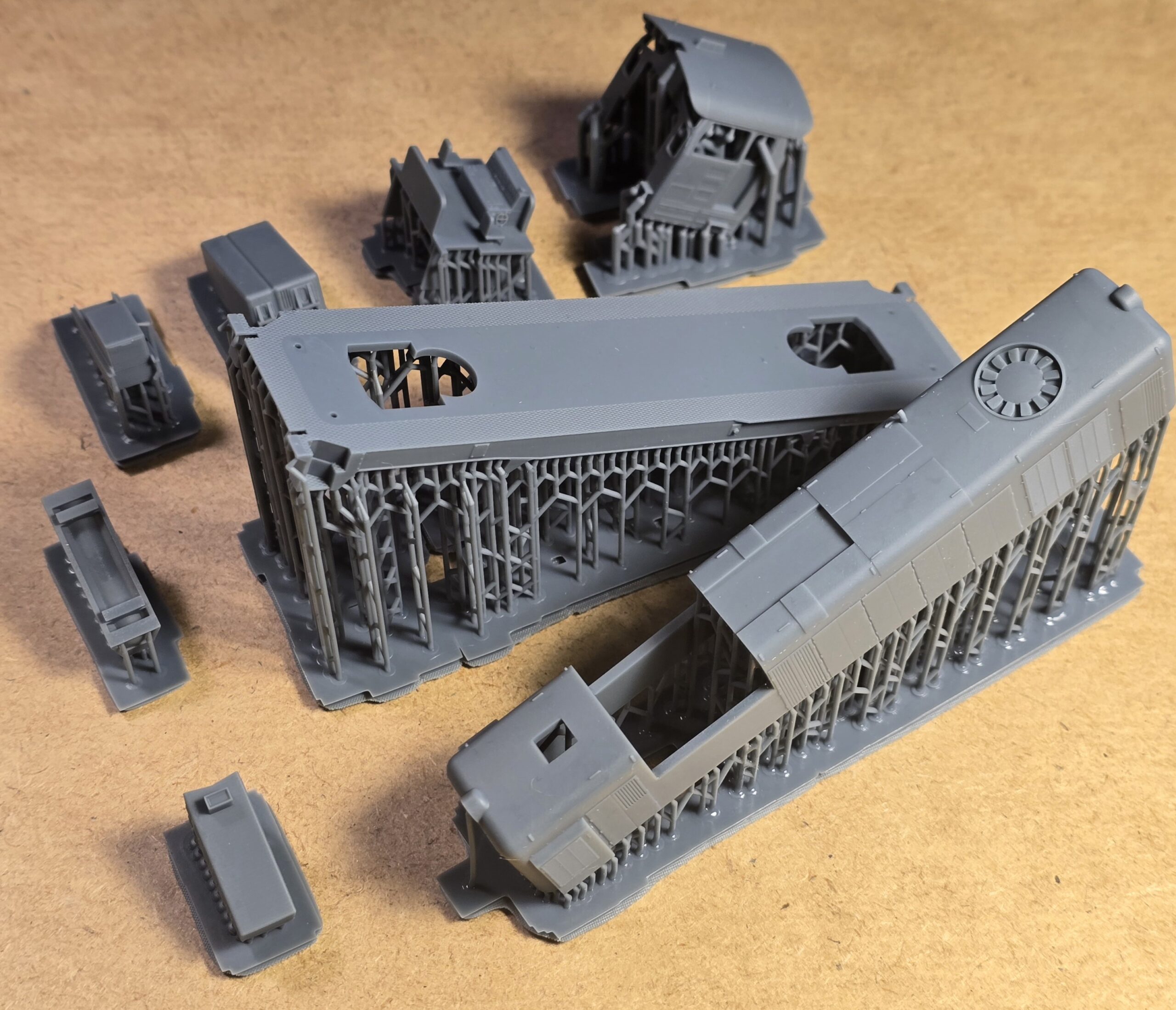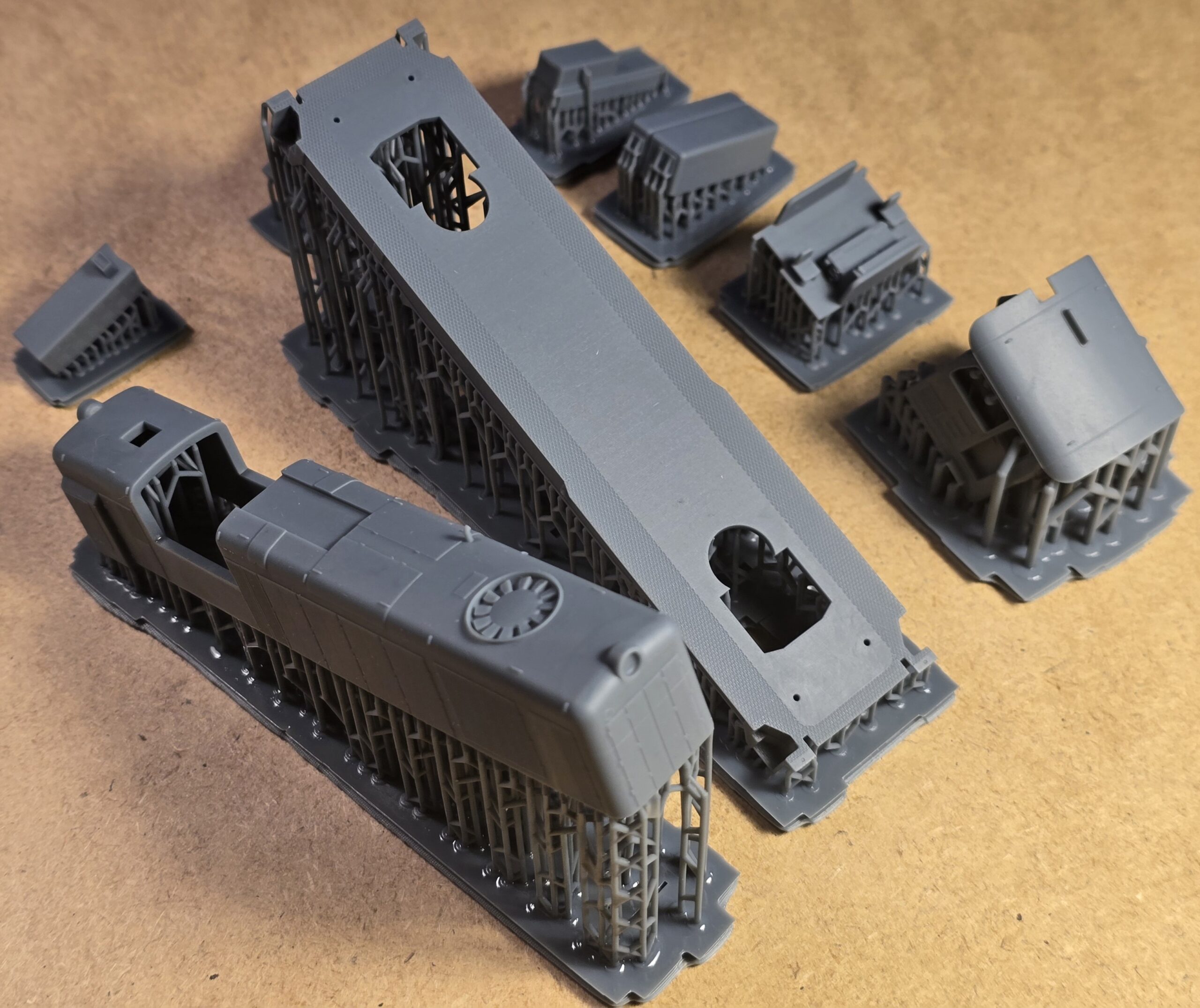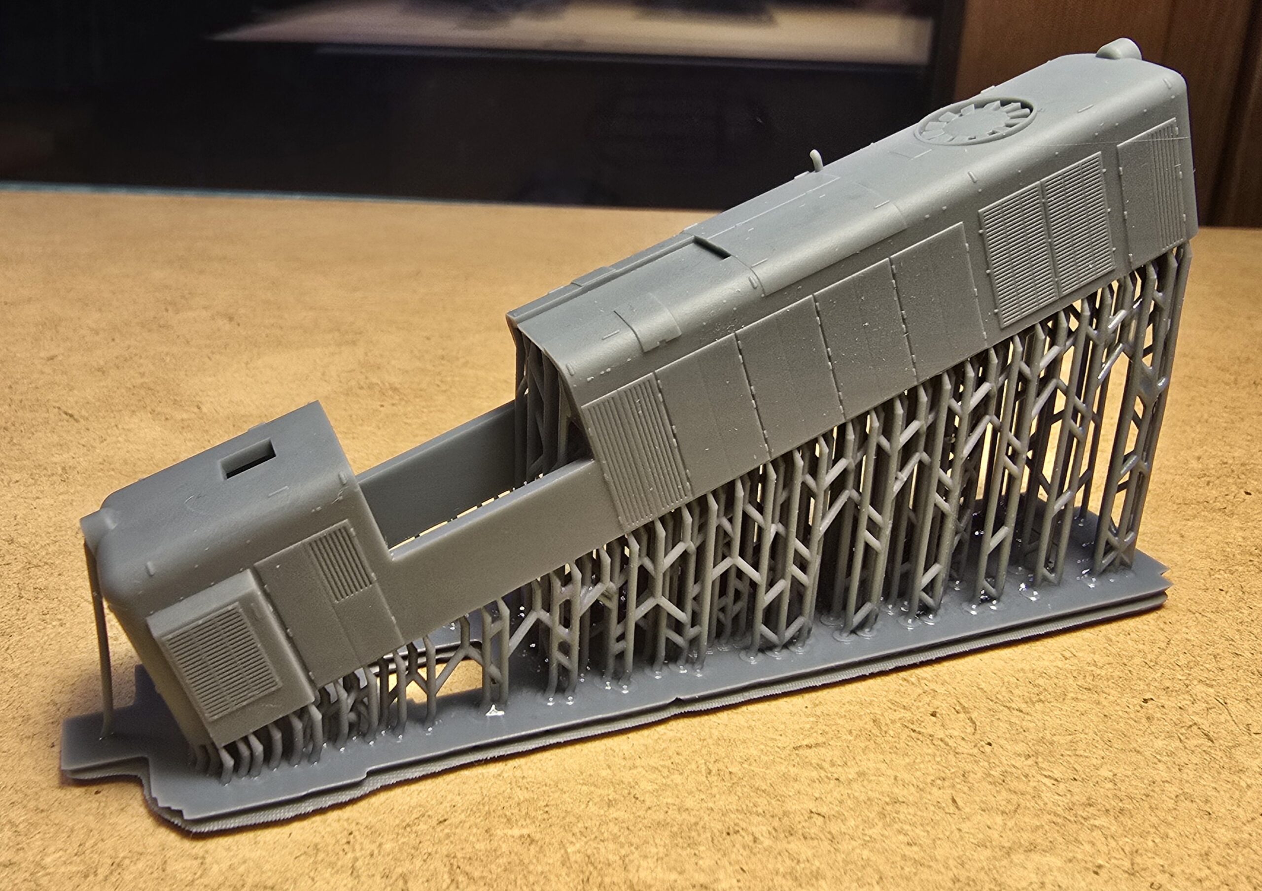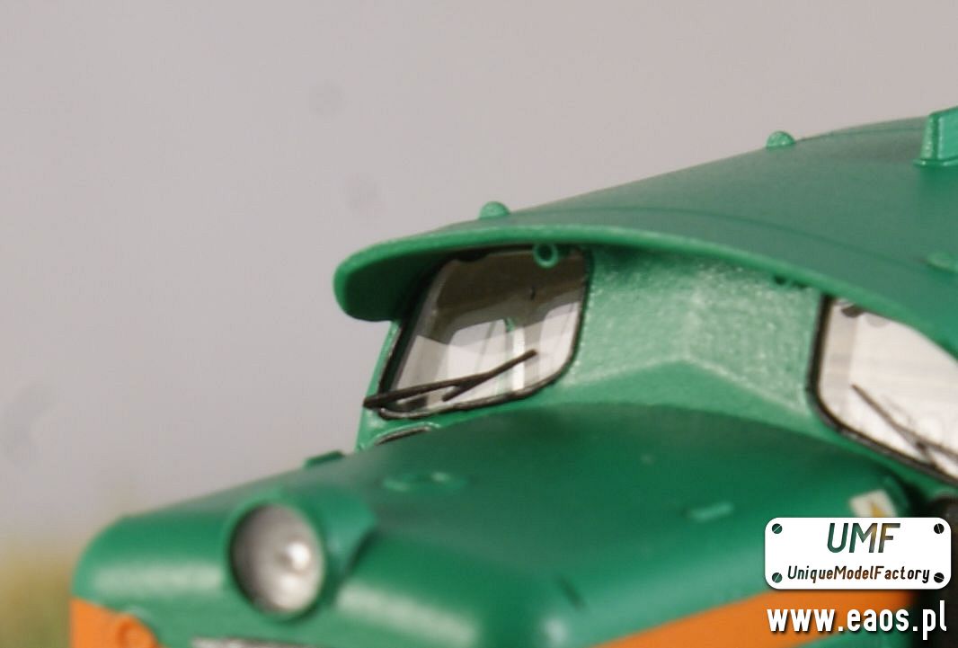– wydruki 3D (rama, wózki boczki plus piasecznice, przedział maszynowy, budka maszynisty, tłumik/i, zbiorniki ramy/zbiornik ramy ze zbiornikiem powietrza (SP42) , odbłyśniki reflektorów, trąbki, wnętrze kabiny)