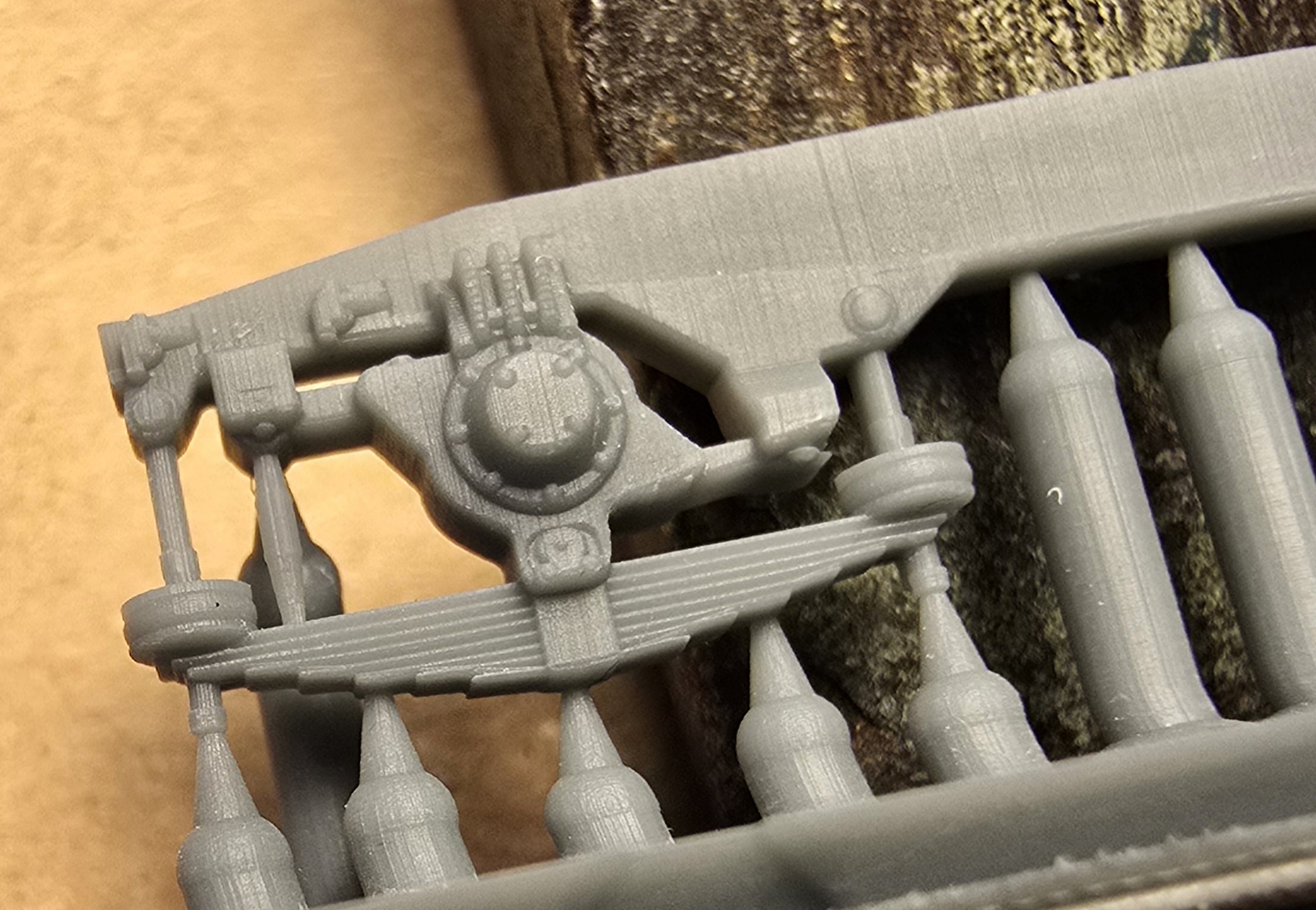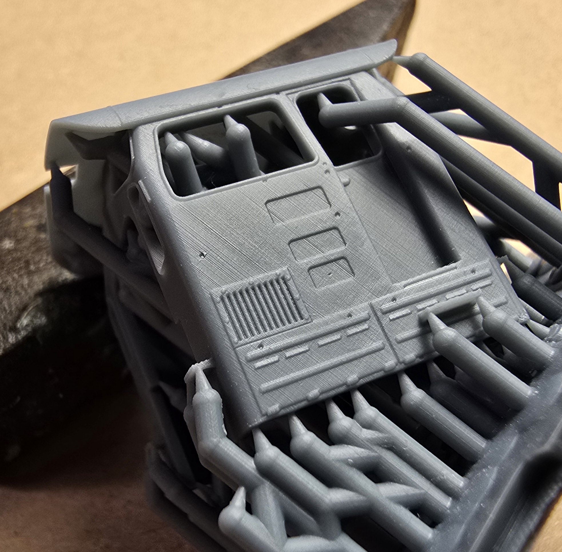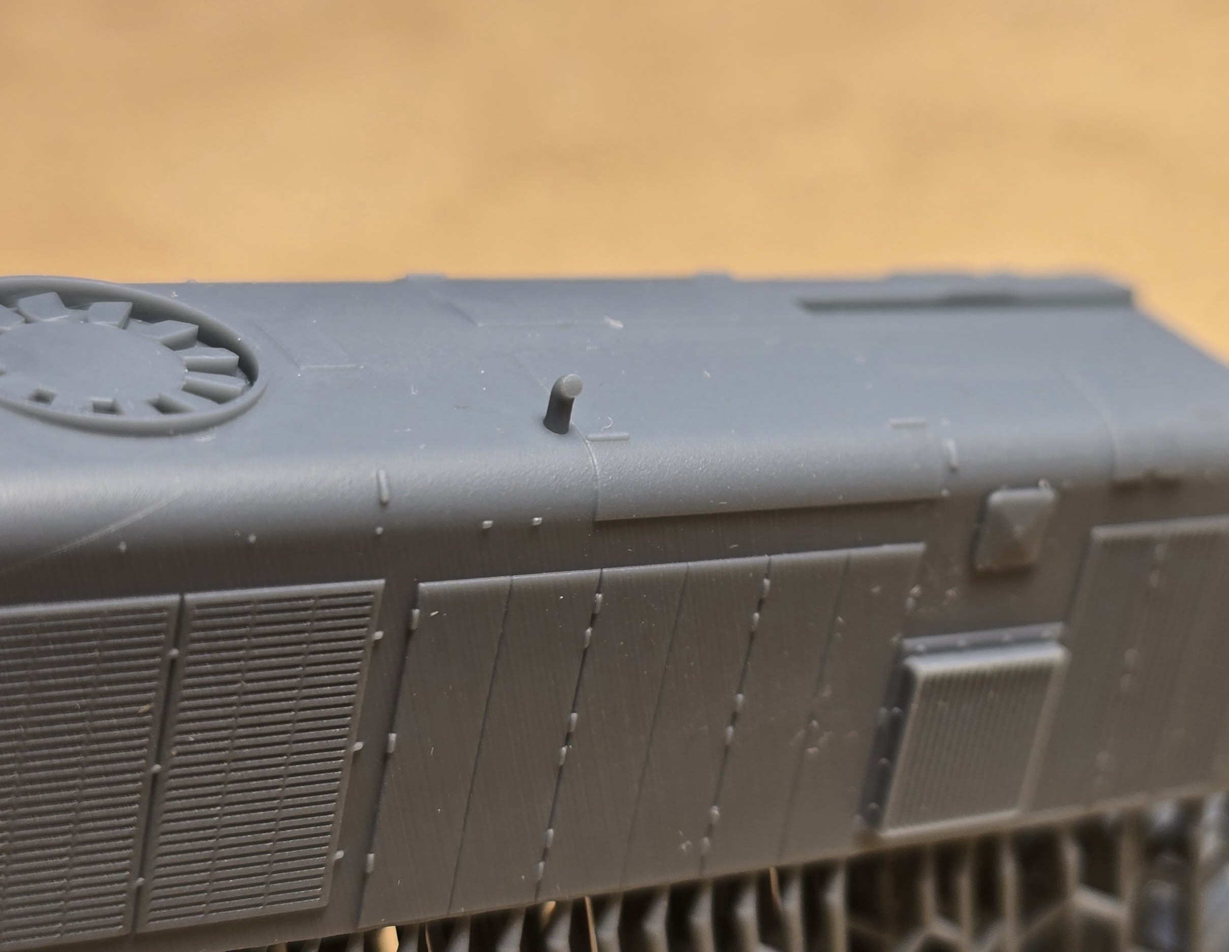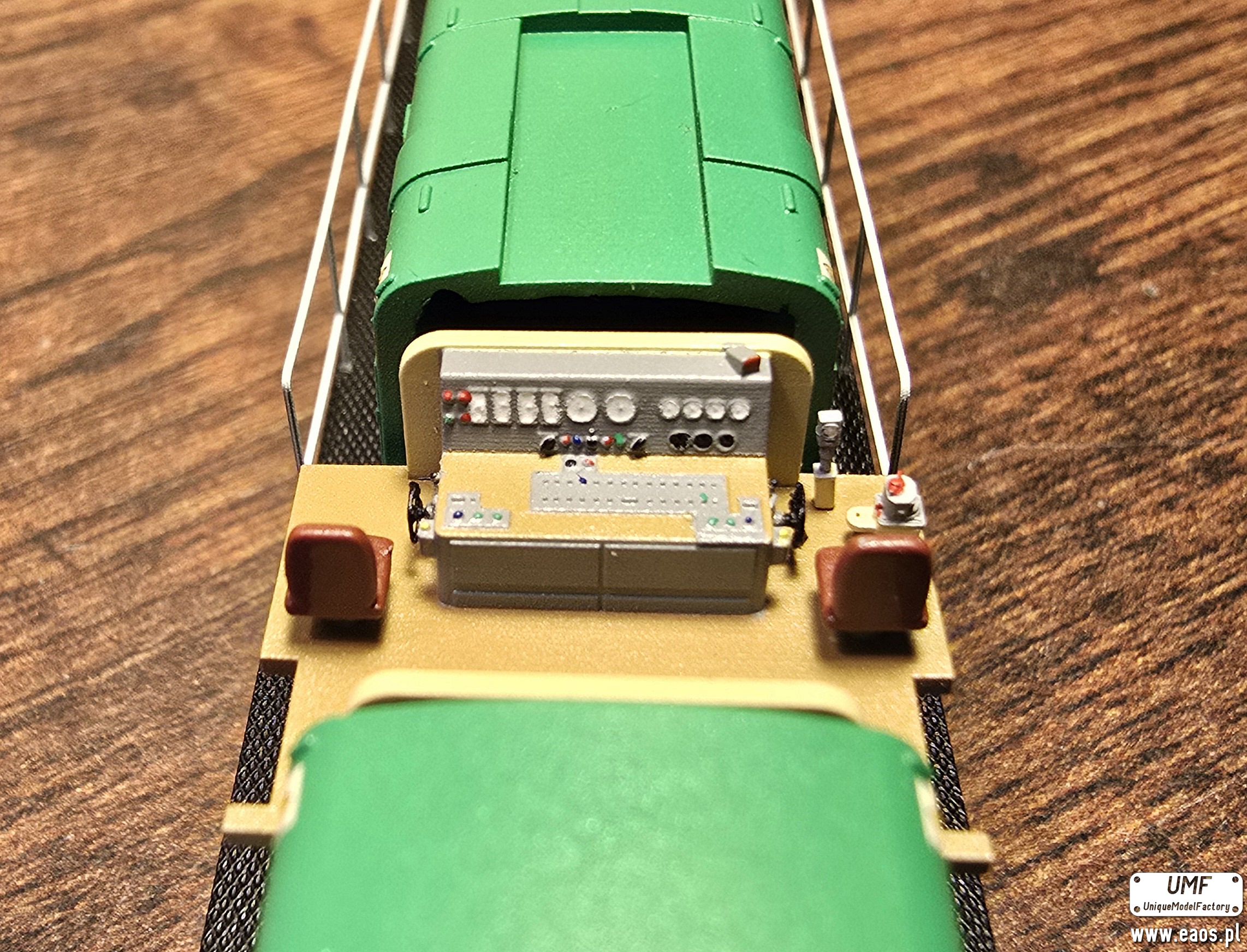 – wydruki 3D (rama, wózki boczki plus piasecznice, przedział maszynowy, budka maszynisty, tłumik/i, zbiorniki ramy/zbiornik ramy ze zbiornikiem powietrza (SP42) , odbłyśniki reflektorów, trąbki, wnętrze kabiny)